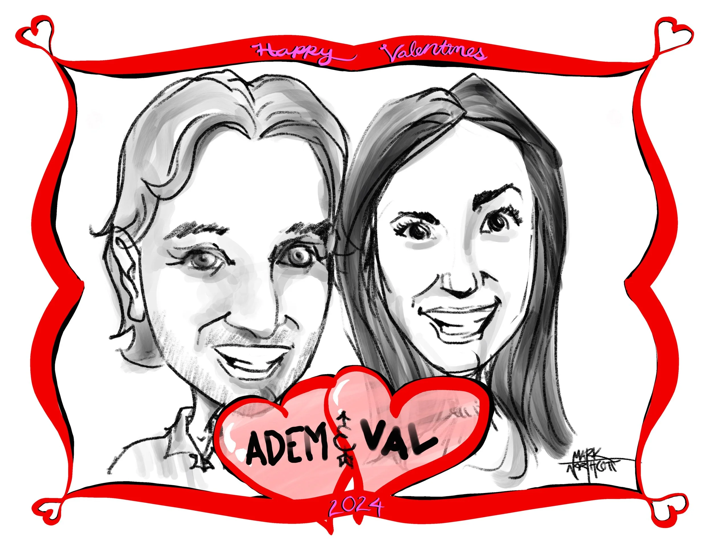 Perhaps this allows for time if anyone would like to stay after for a caricature drawing….starting ta $20 for an individual or for a special Valentine holiday offer - $35 instead of $40!